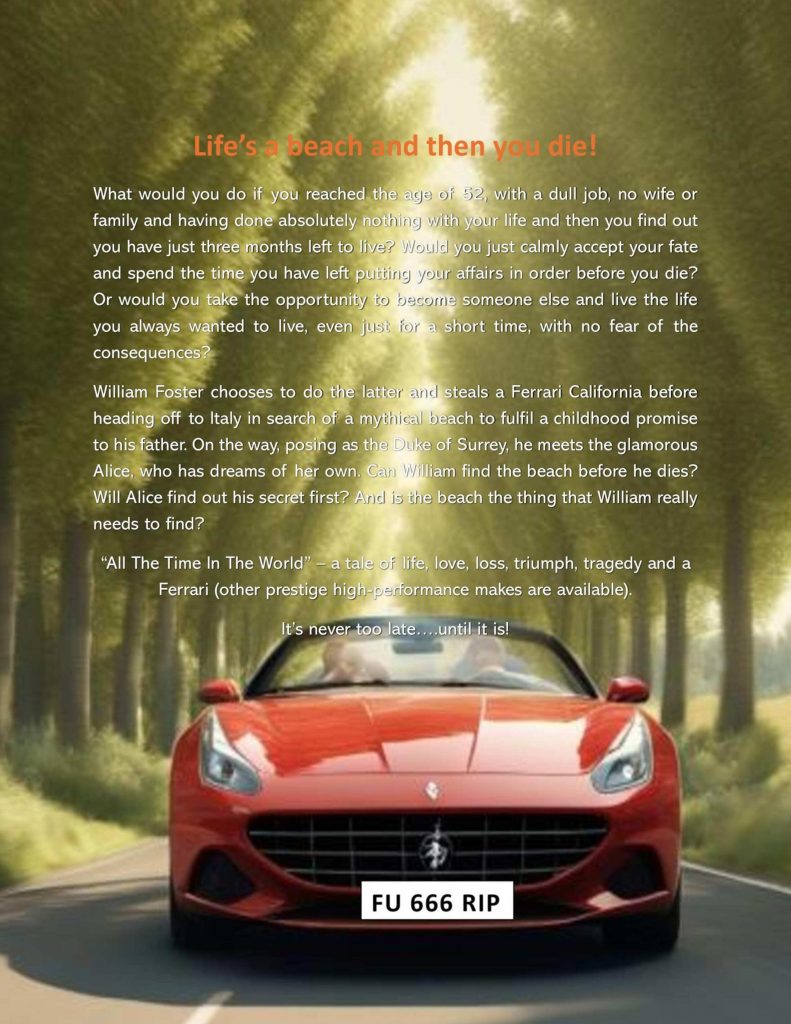 “All The Time In The World” – a tale of life, love, loss, triumph, tragedy and a Ferrari (other prestige high-performance makes are available).
